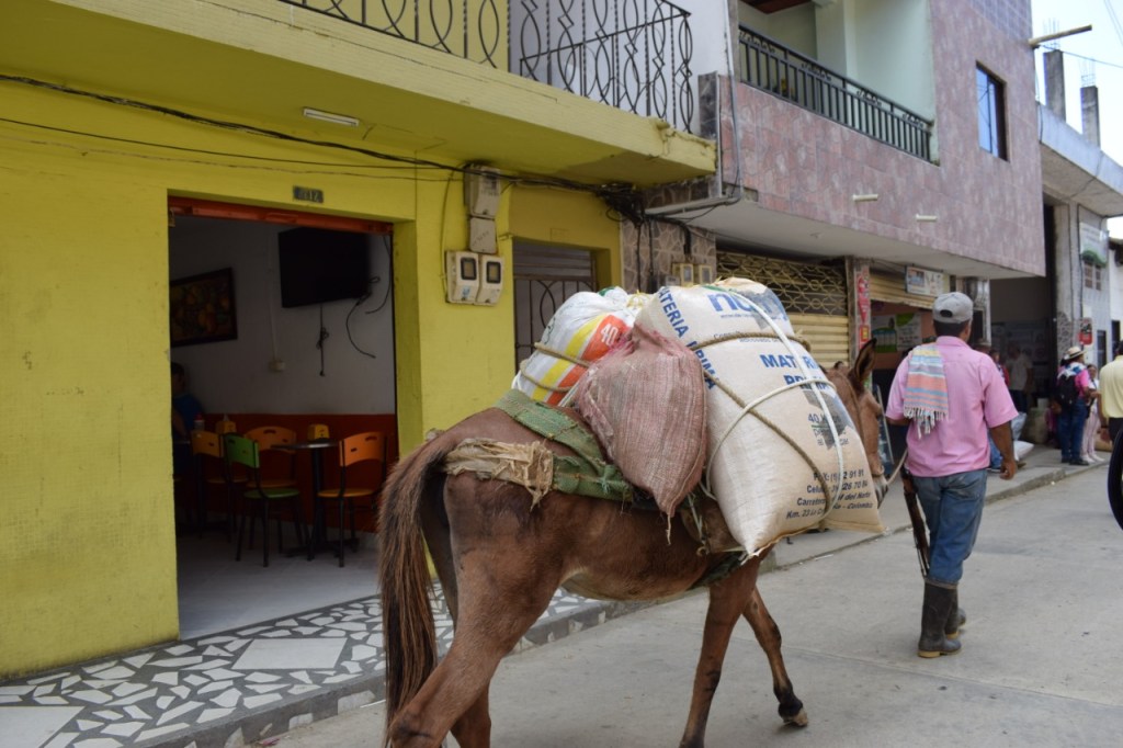 Los caficultores van todos los domingos desde su finca hasta el pueblo a vender su café, muchos caminando con su mula al lado y otros en chiveros, pero con la ilusión de conseguir un buen pago por su carga para que su esfuerzo se vea recompensado de la mejor manera.
